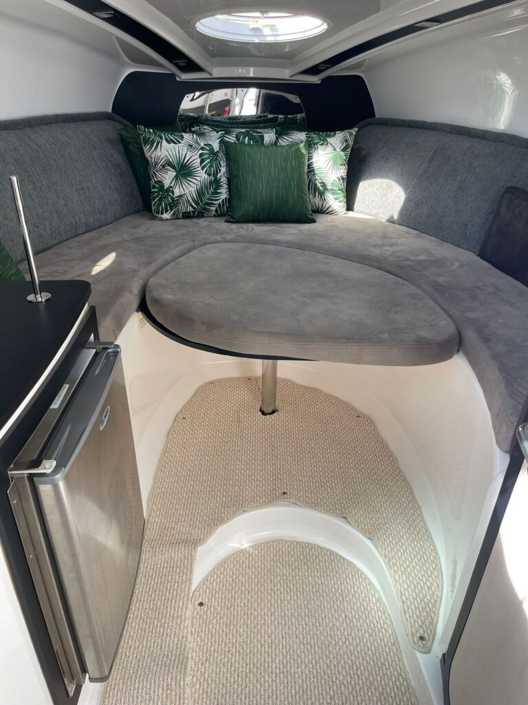 O cockpit é espaçoso, com espaço gourmet, solário de proa e estofados confortáveis, proporcionando momentos de lazer, diversão e descanso com total conforto.