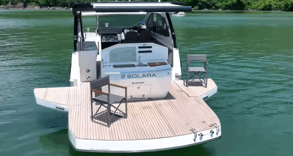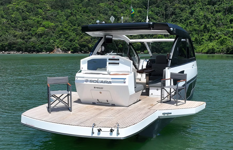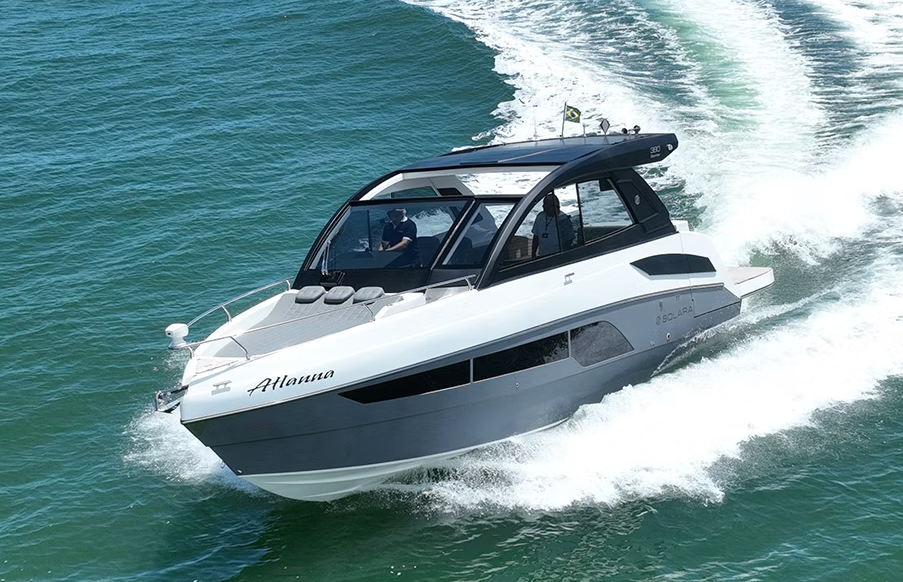 A Solara 380 Bowrider é uma lancha que redefine o conceito de espaço e versatilidade. Com 38 pés, oferece amplo convívio tanto na proa quanto na popa, graças ao seu design bowrider, que prioriza áreas abertas e integração total.