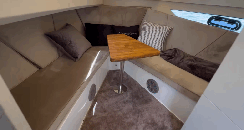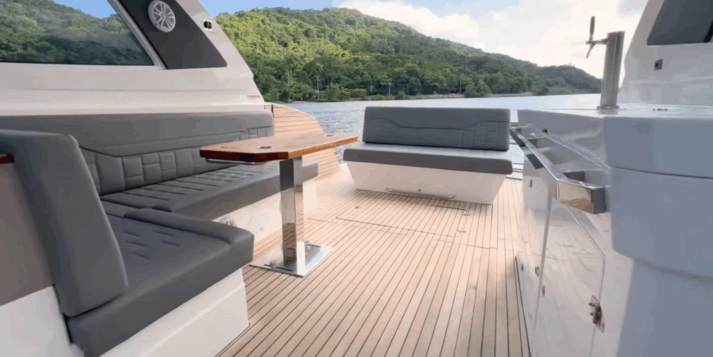 Perfeita para quem busca conforto, lazer e alta performance, possui espaços generosos, acabamento premium e excelente navegabilidade. Conta com solário na proa, espaço gourmet no cockpit, banheiro fechado e uma cabine aconchegante para descanso.