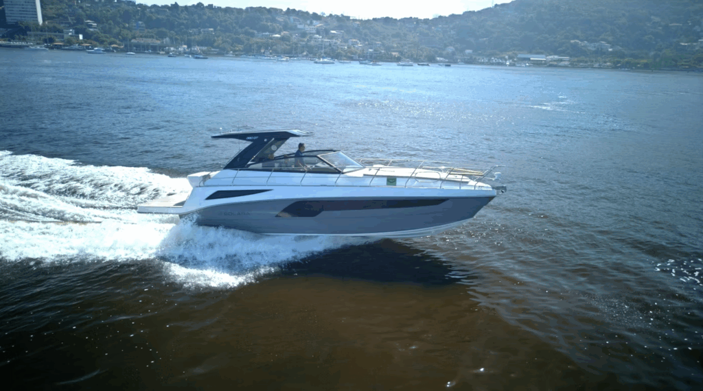 Desempenho Superior: Com motorização potente e um casco desenhado para estabilidade, a Solara 380 entrega uma navegação ágil e segura, seja para longas viagens ou passeios curtos.