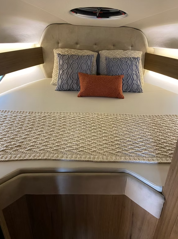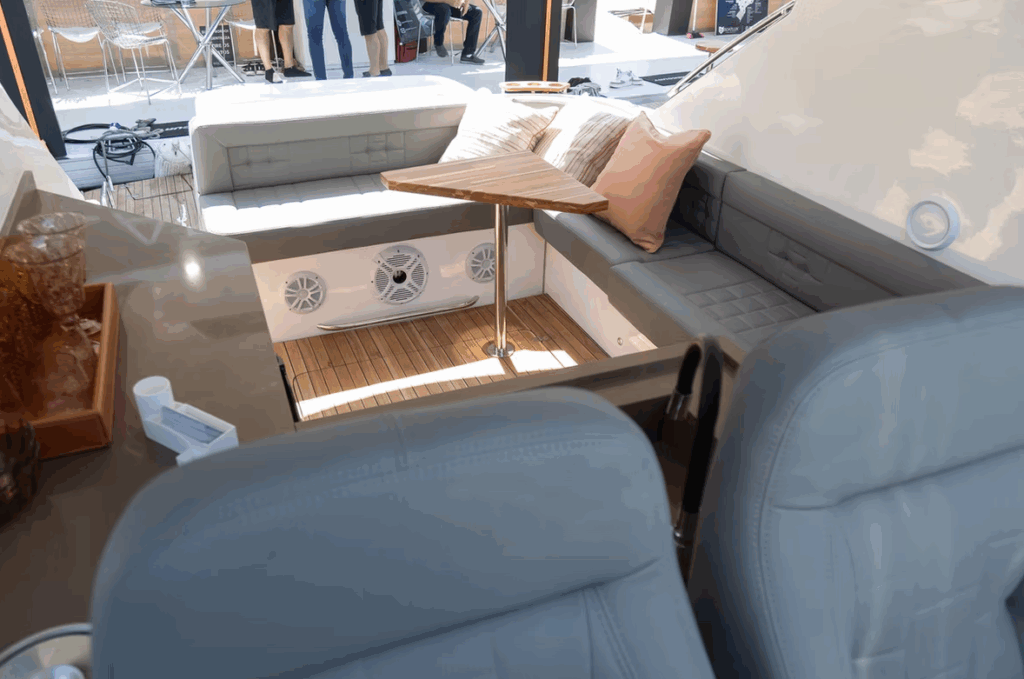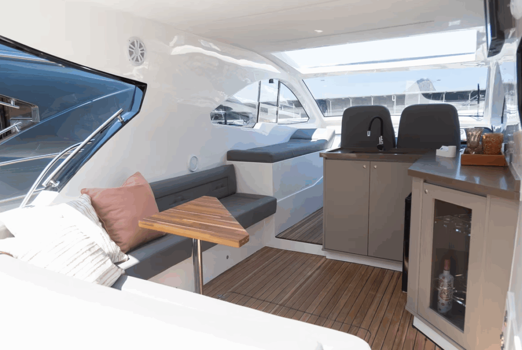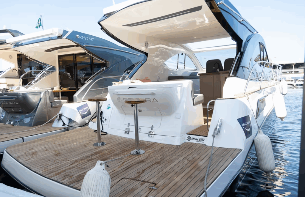 Design Moderno e Sofisticado: O layout da Solara 380 é elegante e contemporâneo, com linhas que garantem uma estética impressionante tanto na água quanto na marina.
