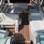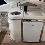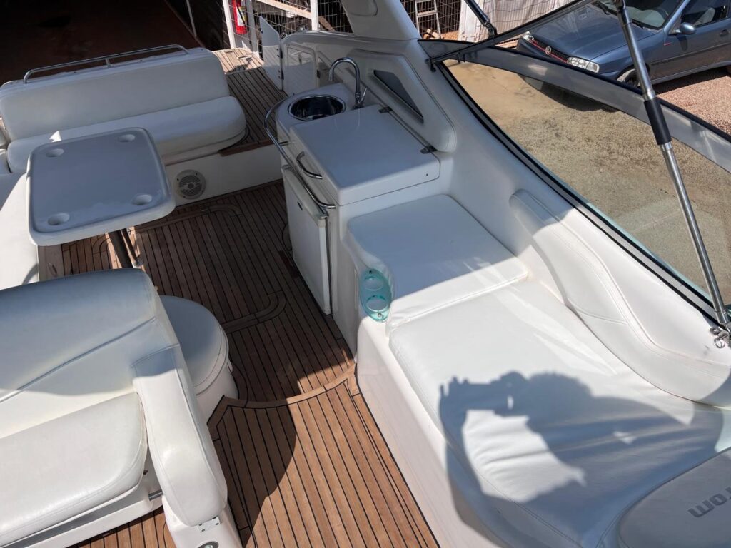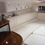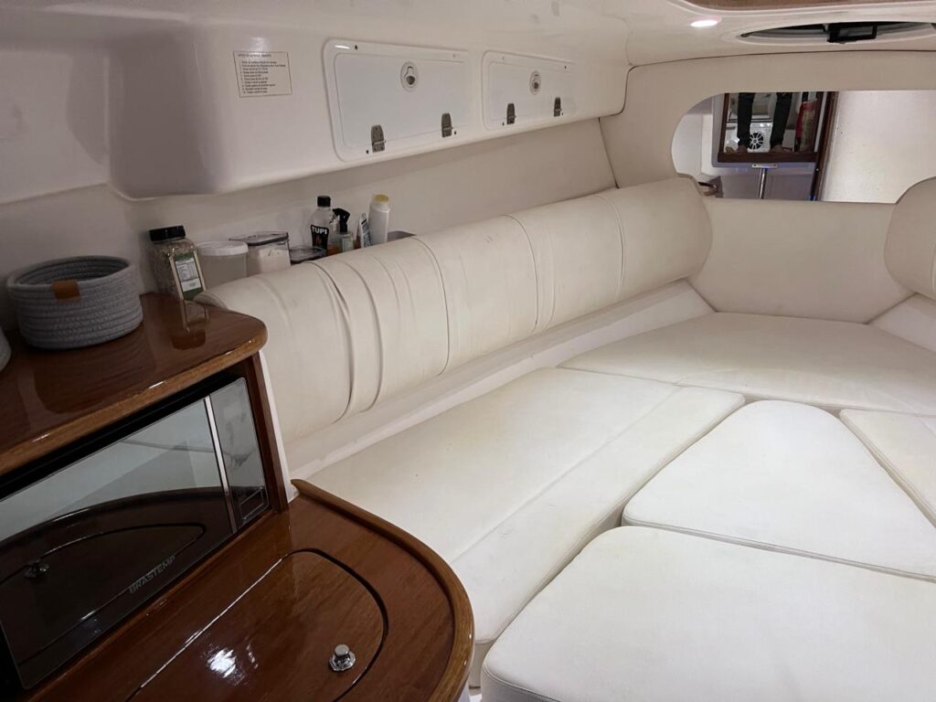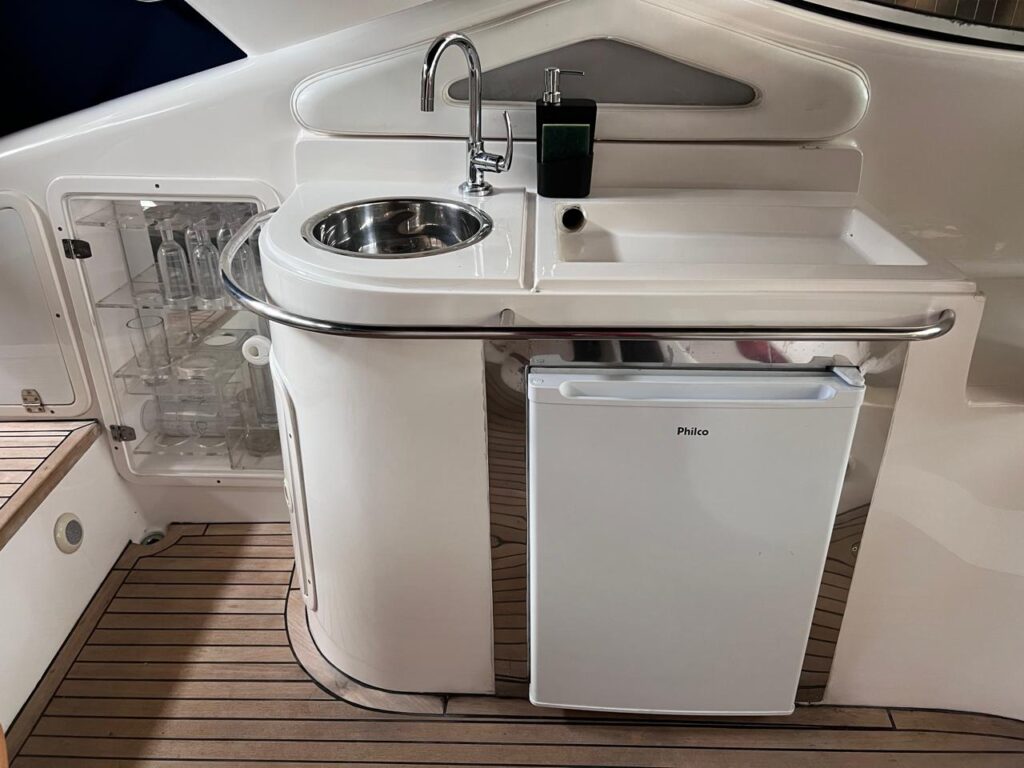 Possui cockpit espaçoso, solário de proa, espaço gourmet e excelente aproveitamento interno, com cabine equipada com cama, sofá, banheiro e cozinha compacta.