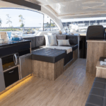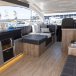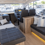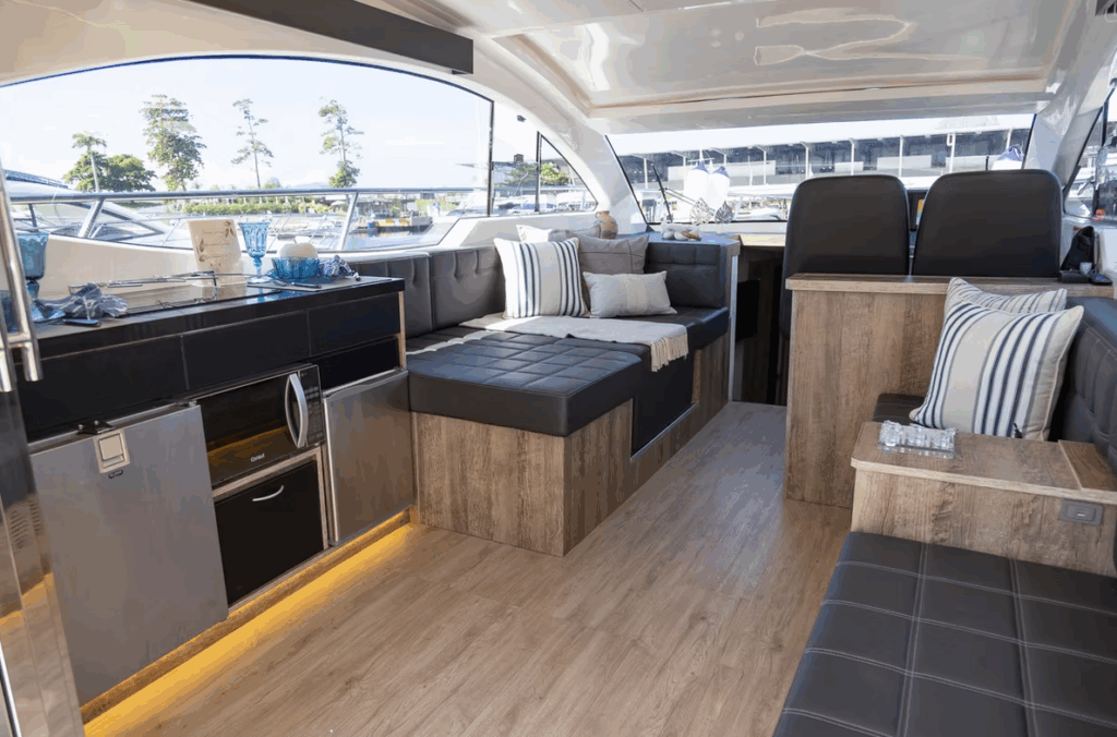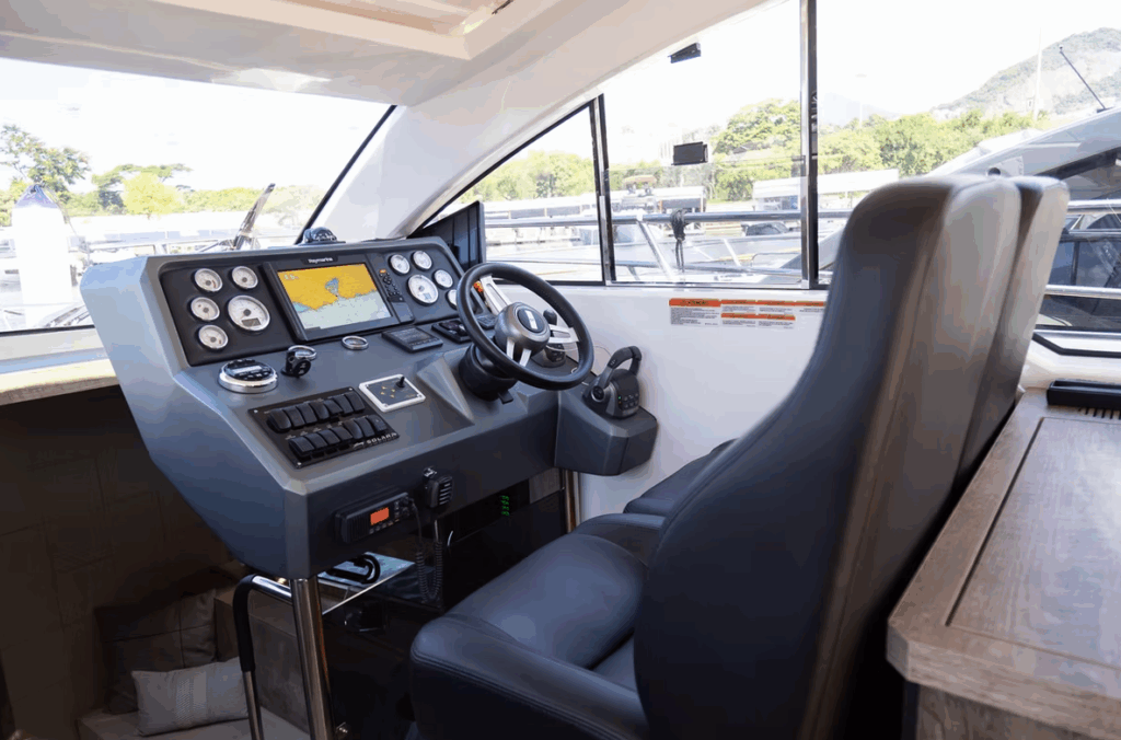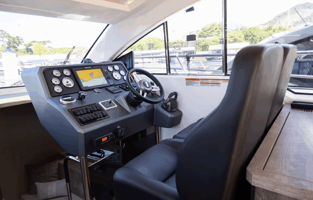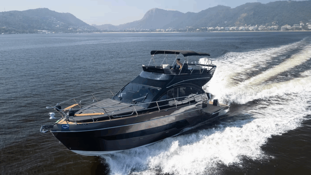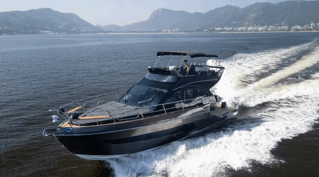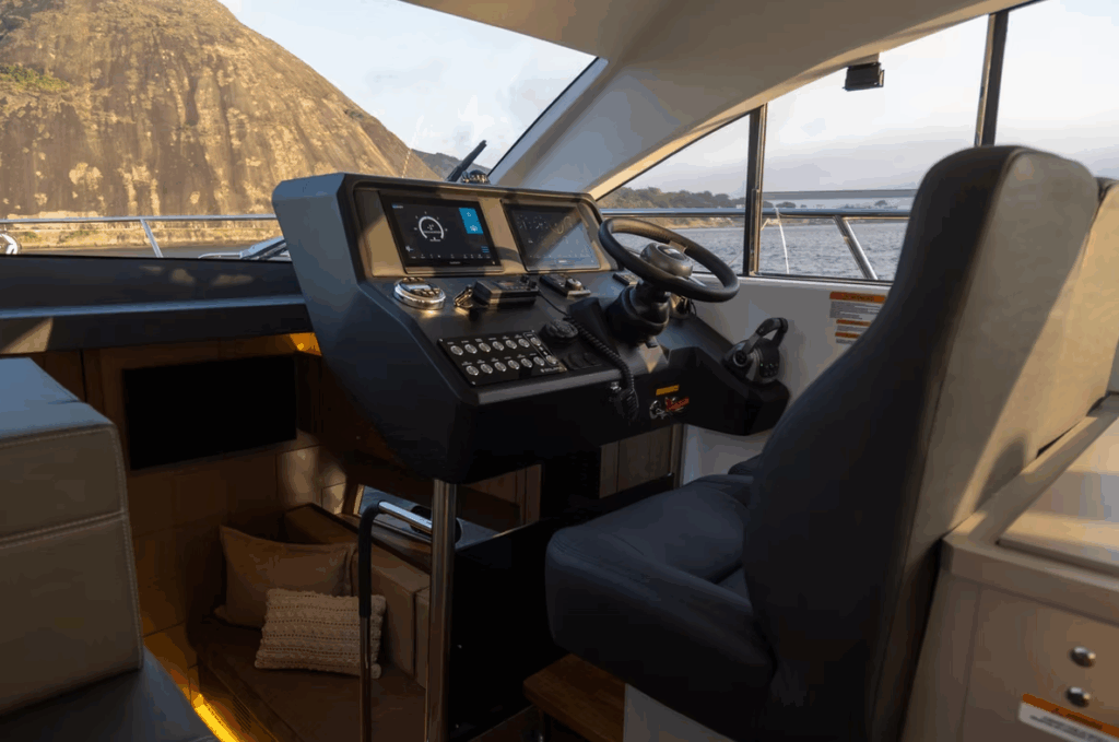 Disponível nas versões Hard Top (HT) e Flybridge (Fly), o modelo se adapta perfeitamente a diferentes estilos de navegação, seja para quem valoriza um cockpit mais fechado e integrado ou para os que preferem um segundo andar com ampla visibilidade e espaço ao ar livre.