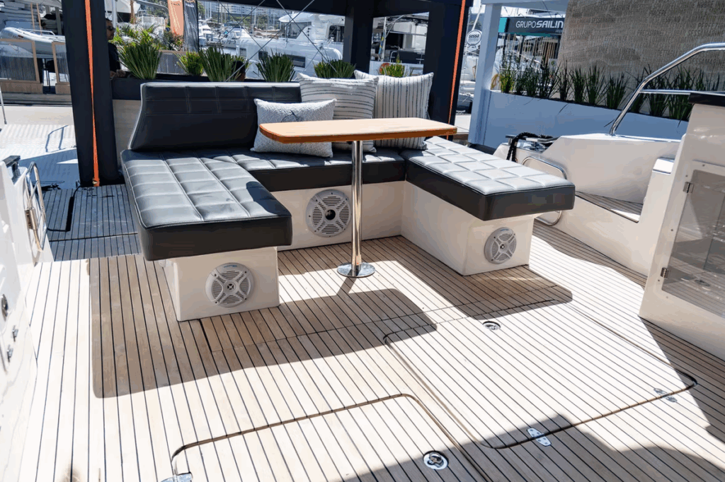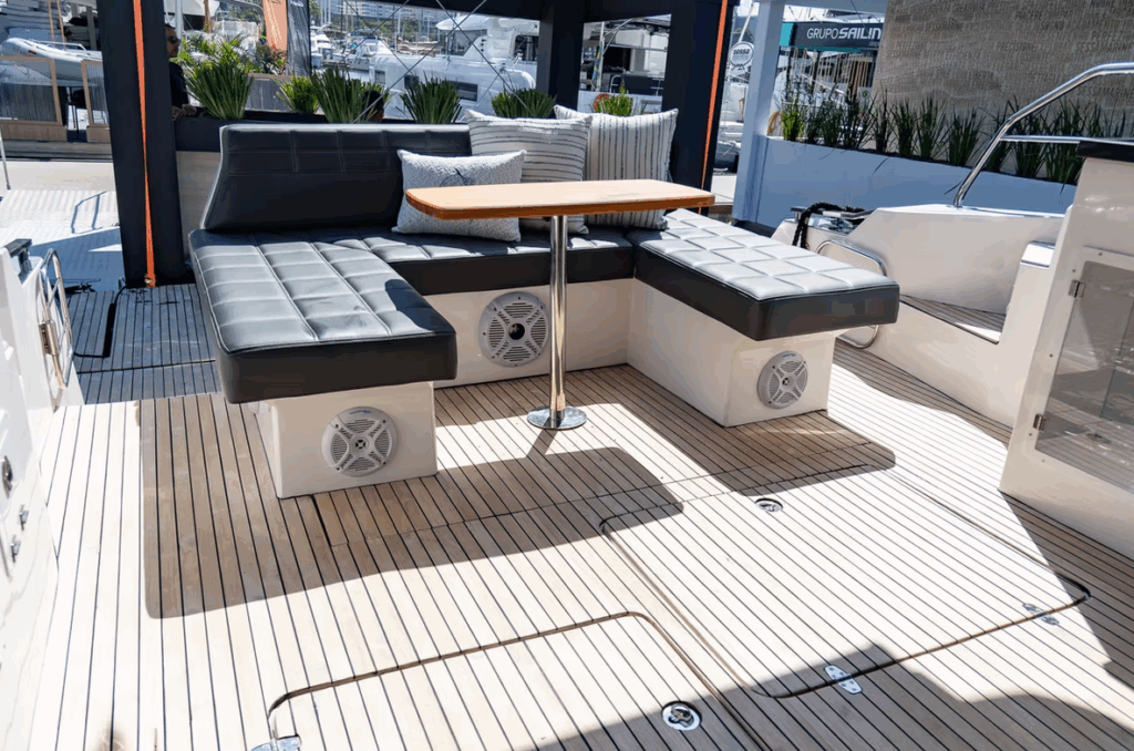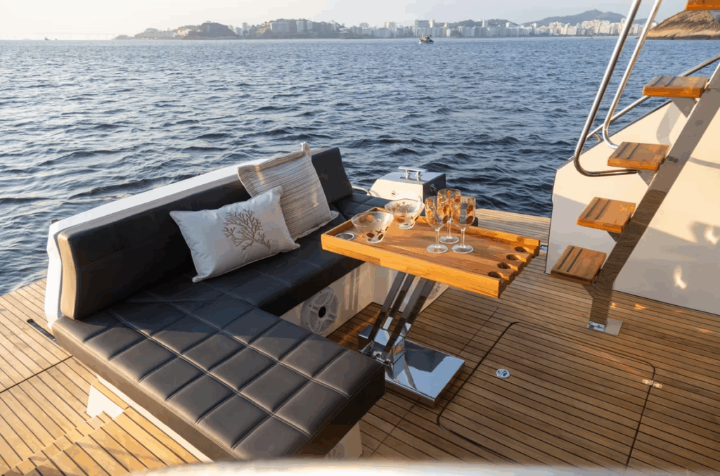 Plataforma de popa ampla, ideal para banho de mar, mergulho e atividades recreativas;
